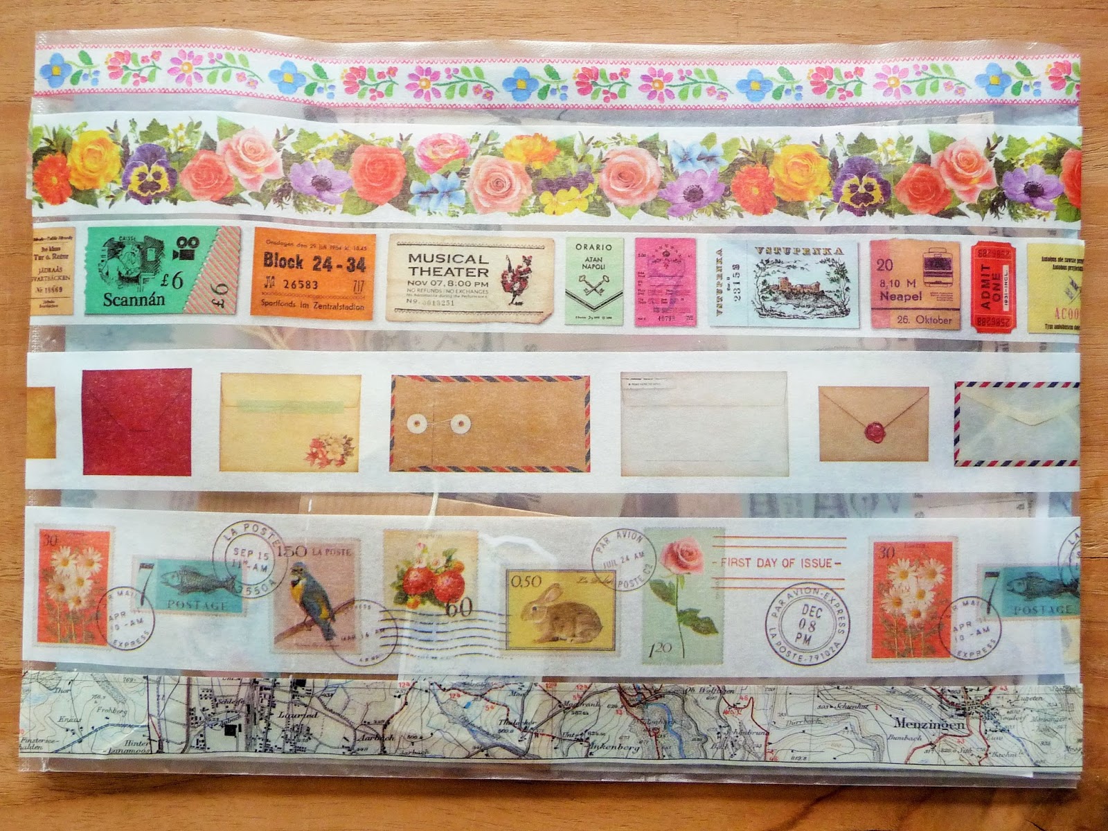 A wonderful package inside my mailbox! I loved the envelope which was closed with a tie ribbon. And lovely label stickers on the envelope! I do have a secret crush on vintage tickets. The mailman decided to stamp these stickers as well, just to be sure I guess. Curious who had sent it to me!